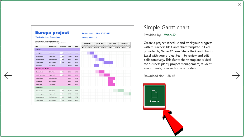 Krok 4: W oknie podglądu kliknij przycisk „Utwórz”, aby wygenerować nowy skoroszyt na podstawie wybranego szablonu.