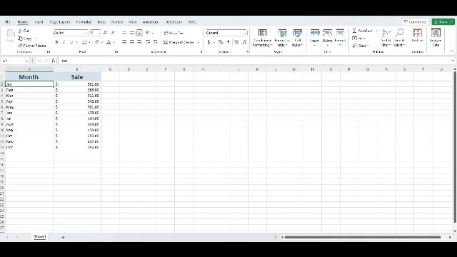 Krok 3: Teraz zacznij wprowadzać dane do komórek arkusza. Aby poprawić wygląd arkusza, użyj opcji formatowania dostępnych na pasku narzędzi.