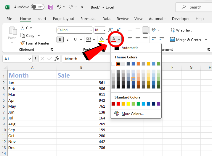 Krok 6: Spersonalizuj wygląd arkusza, dostosowując kolor czcionki dla określonych elementów. Wybierz opcję „Kolor czcionki” w sekcji „Czcionka”.